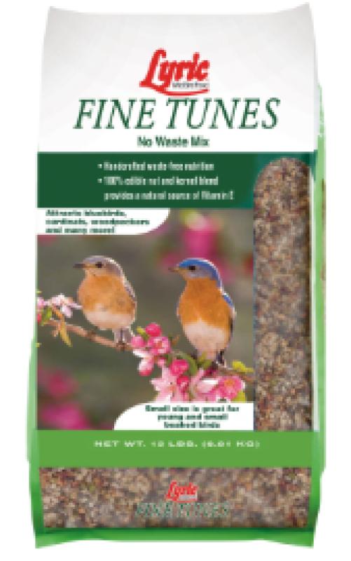 Lyric Fine Tunes is a custom cut, no-filler, no-waste mix. All the shells and hulls are removed from the Fine Tunes nuts and seeds. The mix also does not contain fillers. The smaller pieces flow smoothly in all size feeders. Smaller beaked birds, especially younger birds, will have an easier time eating Lyric Fine Tunes.