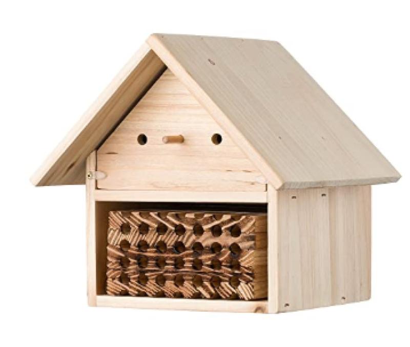 More Wings Mason Cabin Bee house in natural brown wood is an excellent way to help save the bees and support your local ecosystem. Mason bees are a great way to help grow more flowers in your yard and cultivate larger fruits and vegetables. Mason bees are perfect for backyard gardens as they're gentle, easy to raise, and fun to watch. Bee Habitat features durable wood construction with a classic natural brown aesthetic and features a wooden dowel for easy removal and replacement of the attic hatchery door.