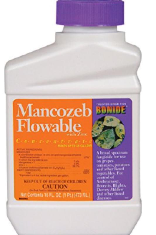 Mancozeb Flowable w/Zinc is A broad spectrum fungicide for use on a wide Variety of vegetables and ornamentals. It Controls leaf spot, downy mildew, blights, anthracnose, botrytis and other listed diseases. Product is Restricted in Maine, and is not for sale in New York state. Product contains: Zinc mancozeb 37. 0%. Use 2 to 5 teaspoons per gallon. Follow instructions on label.