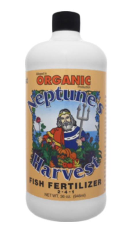 An organic fertilizer made from fresh North Atlantic fish. Made by a unique cold process that protects the vitamins, amino acids, enzymes and growth hormones. Also contains all the micro and macronutrients naturally found in fish. The nitrogen and other nutrients are chelated, so they are readily available for plants' consumption. Unlike fish emulsions, Neptune's Harvest retains the fish proteins and oils and has no unpleasant odor. Outperforms chemical fertilizers.