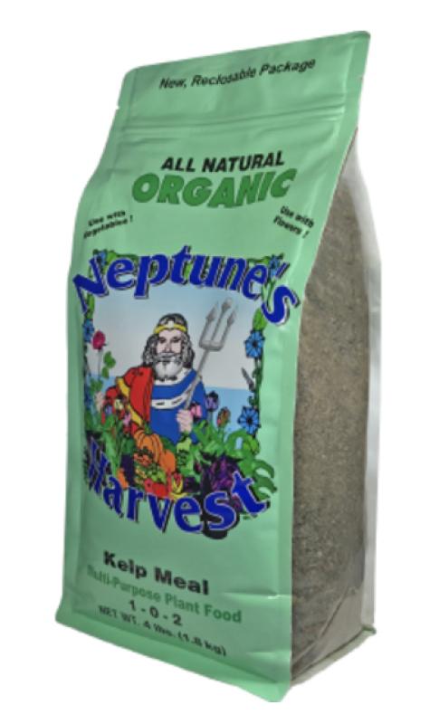 Neptune's Harvest Organic Kelp Meal (1-0-2) is dried and ground Rock Weed (Ascophyllum Nodosum), which grows in the cold clean waters along the New England coast, and is known as the best marine plant available for agriculture today. It is full of trace minerals, carbohydrates and amino acids, which help create a strong root systems and makes a very healthy plant. It should be tilled in the soil before planting or can be top dressed, incorporated into potting soils, seed beds and composting material. It will add organic matter to your soil and help it retain moisture. Kelp Meal will keep your lawn healthy and green, and shows great results on all plants.