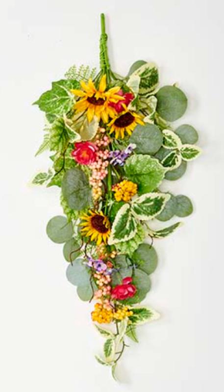 Artificial Sunflower, Berries and Leaves Floral Teardrop