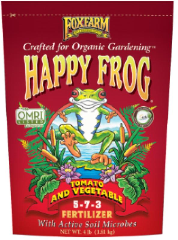 Designed For Vigorous Feeders. Happy Frog Tomato & Vegetable Fertilizer is specifically formulated for use on all veggies, tomato varieties, soft fruits and berries. The nitrogen, phosphorus and potassium in this blend supply the nutrition necessary to support the vegetative and flowering stages of plant growth. This fertilizer also contains calcium which helps prevent blossom end rot and builds stronger cell walls, boosting the plants ability to resist disease. Mycorrhizal fungi are included to help increase root efficiency, which may enhance nutrient uptake and water absorption.