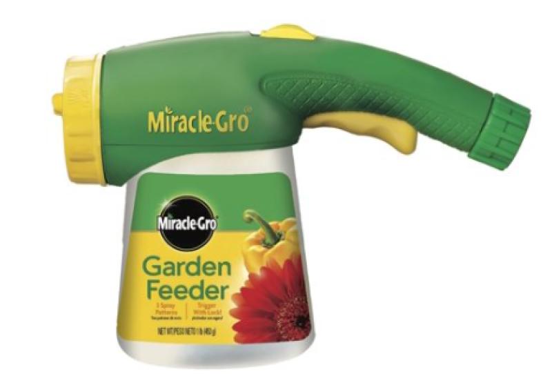 Dry plant food with a hose end sprayer applicator. Features a trigger-lock for one-handed feeding. Includes 3 spray patterns: shower, jet, and flat. Ideal for all outdoor plants including flowers, vegetables, trees, and shrubs. Feed every 1 to 2 weeks for best results. Includes 1-pound Miracle-Gro water soluble all purpose plant food.