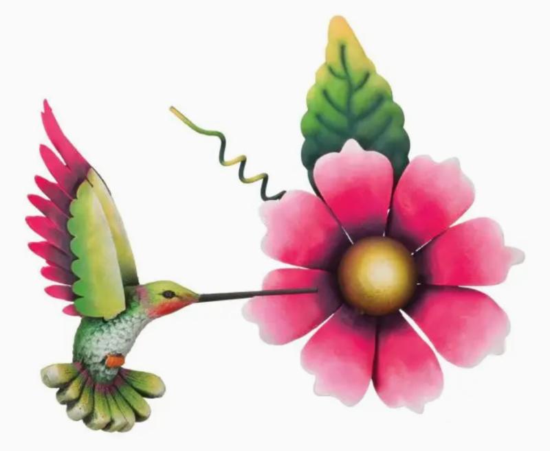 Elegance. Color. Presence. This 3D Hummingbird's body is made from a strong resin and fiberglass compound. The metal wings, flowers, leaves and vines are also highly dimensional and the entire piece stands out 2" from the wall giving it a presence, especially painted in the bright florescent colors.
