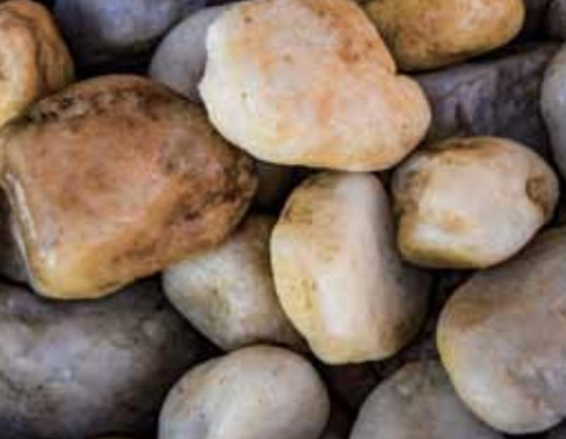 Maryland River Rock features smooth, rounded stones in natural earth tones of gray, tan, and brown that have been naturally polished by flowing water over time. This versatile landscaping stone provides excellent drainage and creates an attractive, low-maintenance ground cover for garden beds, pathways, and water features.