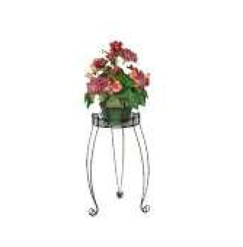 River North Combo Top Plant Stand is configured for 3 small flower pots in individual rings or 1 large flower pot up to 12 in. diameter which makes it ideal for an in-house herb garden or a variety of plants. Very sturdy. Made of heavy gauge wire with powder coat finish.