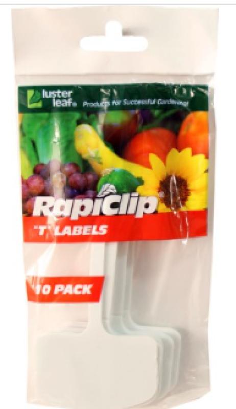 820 Features: -T label plant markers. -Easy to label with seed packet or write on label area. -10 Per card. Product Type: -Plant Supports and Labels. Dimensions: Overall Height - Top to Bottom: -8.75. Overall Width - Side to Side: -3.25. Overall Depth - Front to Back: -0.75. Overall Product Weight: -1.4 lbs.