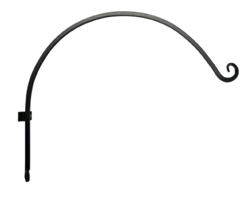Half circle curved hanger featuring upturned hooks. Hand-crafted wrought iron construction.