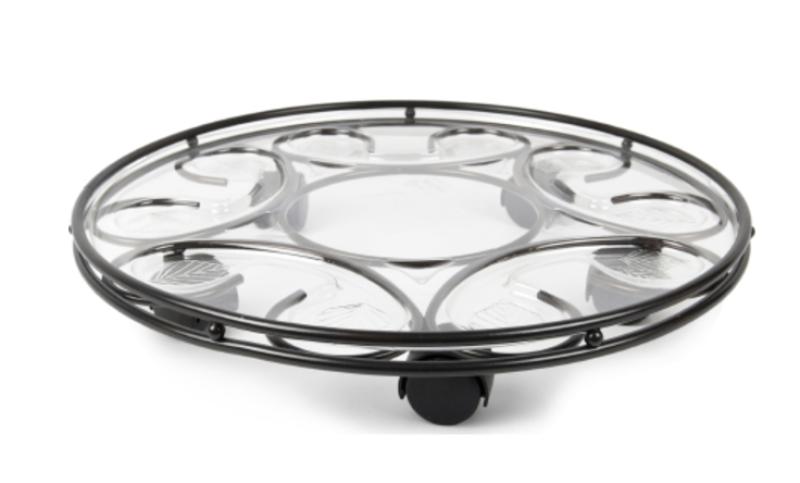 Extra sturdy caddy features 4 custom casters for optimum balance and custom fitted saucer with water wells that offer a dry platform enabling overflow water to escape to the bottom of the planter for the health of the plants root system. Comes in attractive display carton.