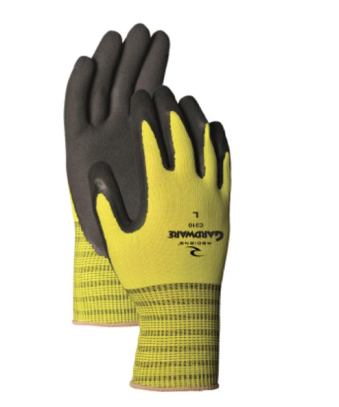 Gardware 310 Extra Grip Work Gloves. Durable, breathable 13-gauge seamless nylon knit provides great grip and fit with less hand fatigue. Featuring a double-coated textured latex palm for excellent grip, wet or dry.