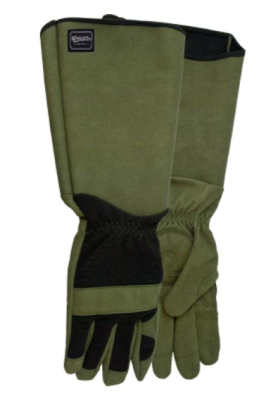 These gloves feature a hard-wearing microfiber palm with a padded palm patch for added comfort. The spandex back, reinforced hooded fingertips, knuckle bar, and thumb saddle provide durability and protection, while the microfiber-laminated PVC gauntlet-style cuff ensures secure coverage of the wrist and lower forearm.