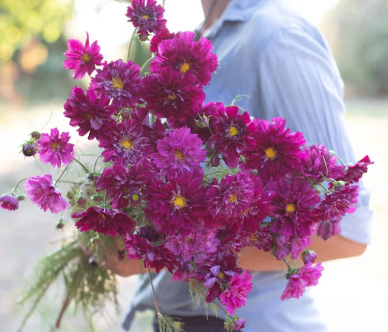 Smothered in rich cranberry-colored double flowers, ‘Double Click Cranberries’ is a favorite with everyone who visits the farm. Long stems hold free-flowering blooms that look breathtaking in bouquets. A wonderful addition to the cutting garden or flower border and one of the easiest and most productive cut flowers per square foot you can grow.