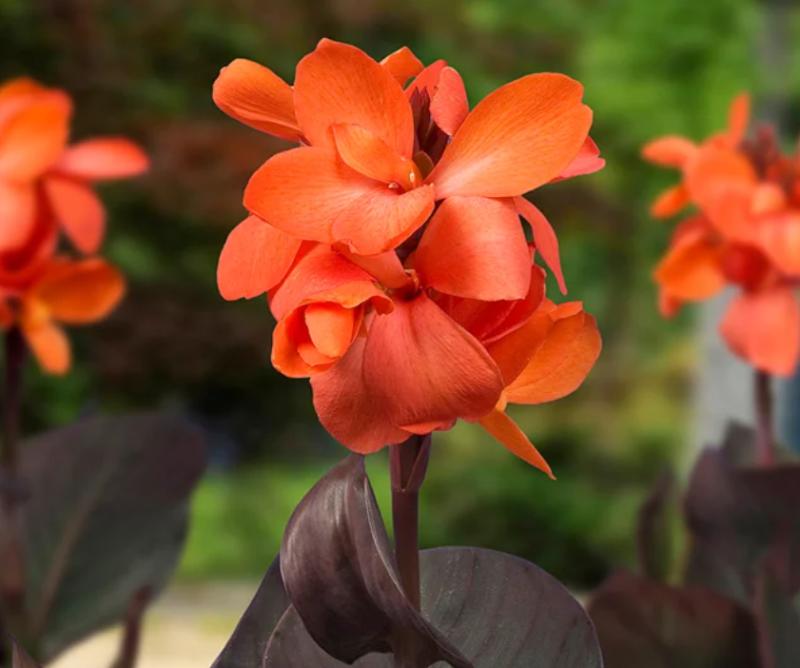 Happy Wilma® Canna Lily brighten up your summer garden with tropical panache. Something about the exotic burgundy/bronze foliage topped by tangerine flowers can punctuate the summer garden as a striking focal point!