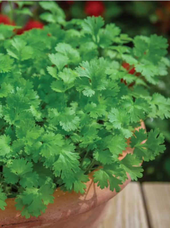 Salsa essential! Use pungent leaves (cilantro) in Asian and Mexican dishes. The seeds (coriander) are used to make curry powder and in sausages. Start outdoors after danger of frost