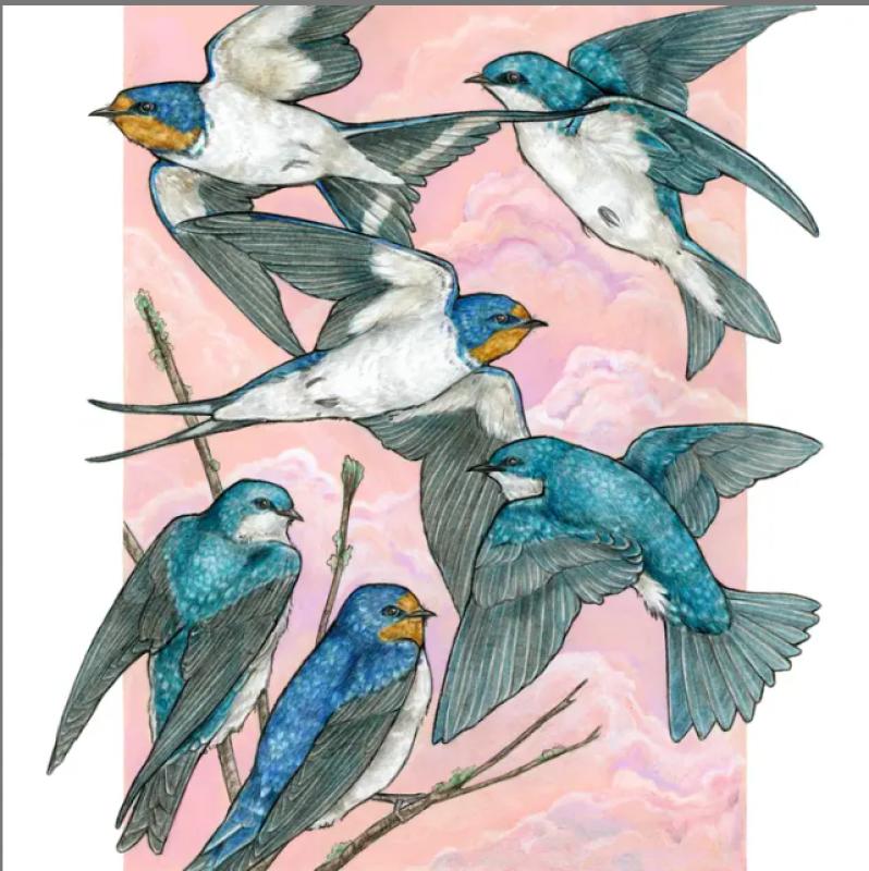 Bring the magic of natures graceful flight into your home with this 8 x 10 archival print. Featuring barn swallows and tree swallows soaring freely, on premium 100% cotton rag matte paper designed t keep its vivid colors and fine details for years to come on