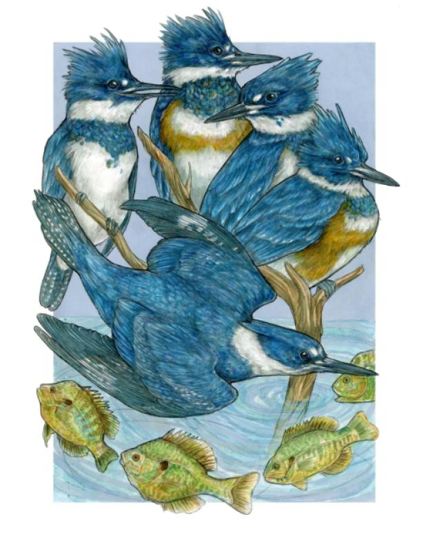 Grace your space with the vivid beauty of Kingfishers in this archival-quality 8 x 10 art print on 100% cotton rag matte paper, titled "A Realm of Kingfishers." Featuring a vibrant group of kingfishers perched in peaceful unity, this hand-illustrated piece celebrates the elegance, energy, and color of one of natures most striking birds.