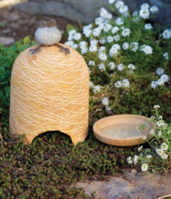 Invite toads to visit your yard with the Ancient Graffiti Soft Orange Ceramic Toad House with Bath. This charming domed unit provides toads a wonderful shelter and also adds a whimsical hint to your garden. Allowing these amphibians a habitation in your garden provides natural pest control as they nightly dine on flies grasshoppers and slugs. Toads prefer to rest in shade protected from the sun during the day and this orange ceramic unit perfectly meets their needs. A 2.75 wide and 1.5 tall opening at the base allows toads to enter the unit and its 5 interior diameter offers plenty of space for them to rest. The ceramic body orange hue and textured finish enhance your garden while a metal and river rock toad figurine at the top lends a whimsical hint. Place the matching 4.125 diameter bath next to this shelter for toads to soak in water and stay comfortable. The level base on both the bath and home enable them to sit evenly within your landscaping and the orange hue brings surprising drama to them. Keep toads happy and safe in your garden with this Soft Orange Ceramic Toad House with Bath. Toad House Dimensions: 5.5 dia. x 7 H Bath Dimensions: 4.125 dia. x 0.5 H