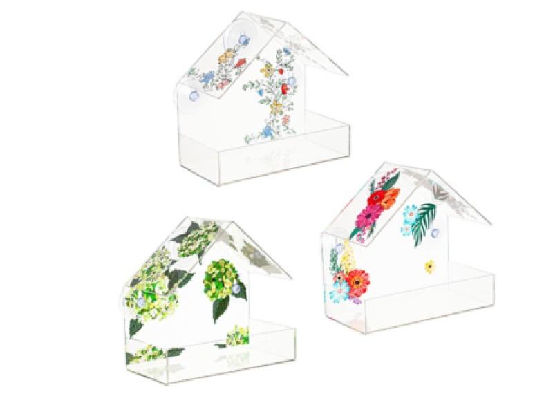 You can enjoy birding as an activity from the comfort of their home with these Printed Acrylic Window Bird Feeders. The assortment of 3 includes a hydrangea English garden and tropical floral design that adds an extra pop of color to windows while beckoning feathered friends.