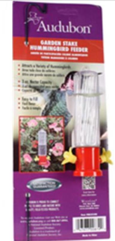 Woodlink NA35248 3oz Garden Stake Hummingbird Feeder - Red/Clear Features:-Clear glass feeder that attracts a variety of hummingbirds-Also ideal for flower boxes hanging baskets and other small spaces-Decorative twist-off base of two no drip yellow colored flowers-Two swirling perches makes it easy to clean.