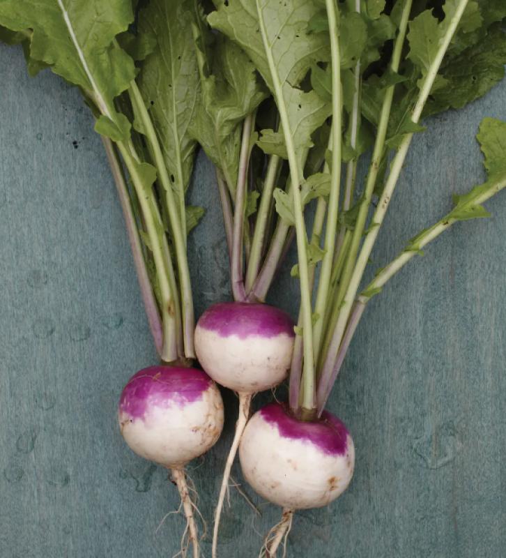 Turnip lovers cherish these deliciously sweet and tender white roots. Handsomely blushed with pink to purple at the crown, these classic heirloom turnips range from 4–6" across. Super-nutritious young leaves on the easy-growing plants are the classic southern greens of legend and are perfect for soups, in vegetable gratin, or baked alongside other root vegetables.