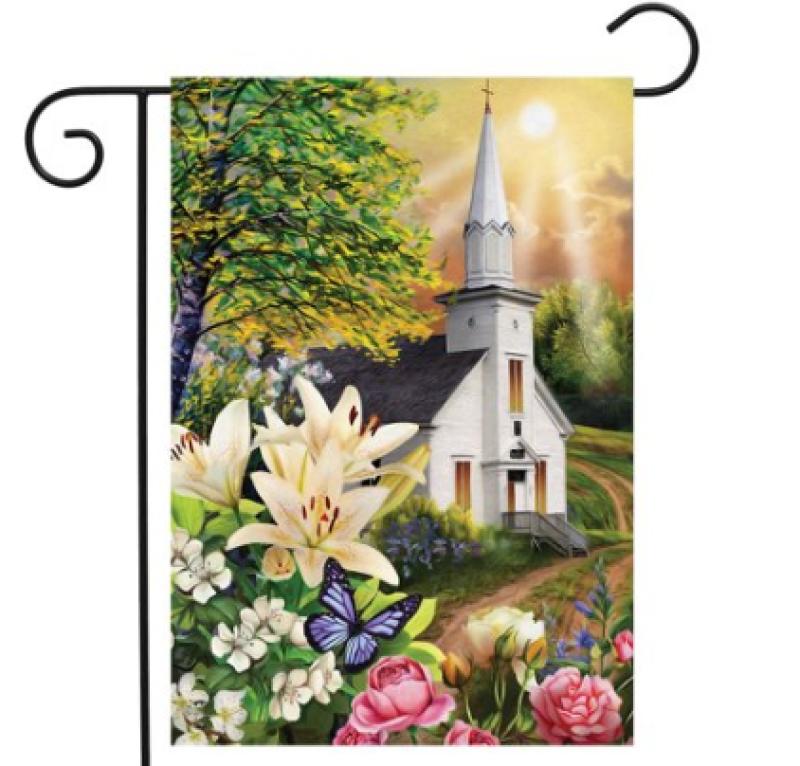 This Spring Religious Church Garden Flag measures 12.5 x 18, Artwork is printed on polyester material designed for outdoor display. Artwork is correctly readable on one side.