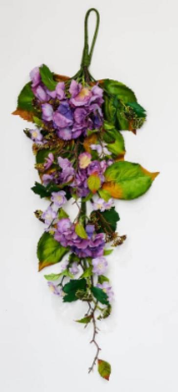 Get ready for Spring or Summer with this beautiful hydrangea teardrop. It features gorgeous blooms along with large green leaves and berries. Hang it on a door or wall to welcome guests.