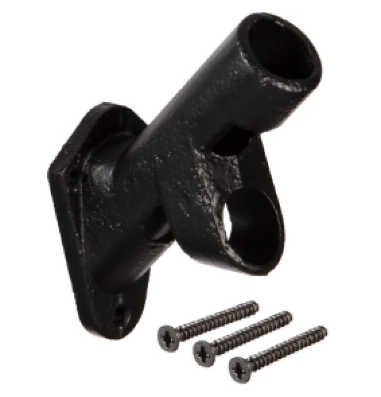 Easy to install, you can fly your flag wherever you'd like with the help of this adjustable pole bracket. Crafted from cast iron with a sleek black look, the two-position bracket, formed by casting, can be used as a wall mount or pole for house and estate flags. Choose between two different positions: 45-degree angle or 90-degree angle. Mounting screws are included. The hardware is powder-coated with a weather-resistant finish to ensure long-lasting use.
