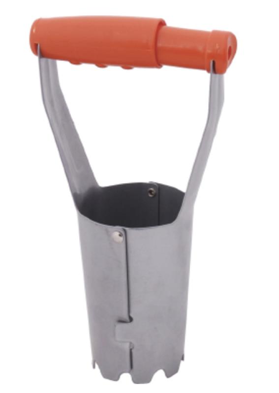 Heavy-duty steel bulb planter with an orange, releasable handle. Makes the perfect hole and easily releases the soil.