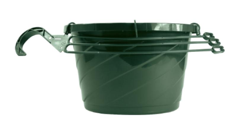 Euro plastic hanging baskets with attached saucers boast a renowned swirl design. Attached saucer (12" model only) catches water run-off. Large hook snaps into basket easily for secure hanging.