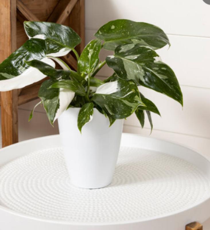 Here’s an enchanting philodendron that will put a spell on you with its botanical magic–Prismacolor ‘White Wizard’. This highly sought-after philodendron casts spells of wonder as it unfurls spade-shaped leaves, marbled and splashed with crisp white variegation. It’s not sorcery, but it is a ‘White Wizard’! With a moss pole or other structure as its staff, this climbing philodendron will weave its spellbinding charm upwards, sending out aerial roots, and growing larger, even more resplendent leaves over time.