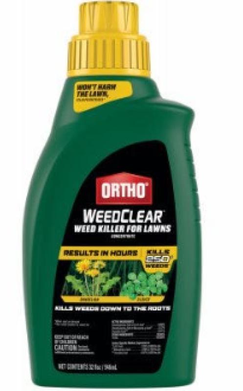You can kill weeds without harming your lawn with Ortho WeedClear Weed Killer for Lawns Concentrate (when used as directed). This weed killer kills over 250 common weeds, including dandelions, clover, poison ivy, sumac, chickweed, and dollarweed (see product label for complete weed list). It is made especially for residential lawns and contains three proven ingredients to specifically target and destroy other common lawn weeds, without harming your grass (when used as directed). This herbicide works by entering weeds through their leaves, and moves throughout the plant to kill all the way down to the root. You'll see visible results in hours, and it becomes rainproof within one hour upon drying. Easily apply this concentrated formula with an Ortho Dial N Spray or tank sprayer.