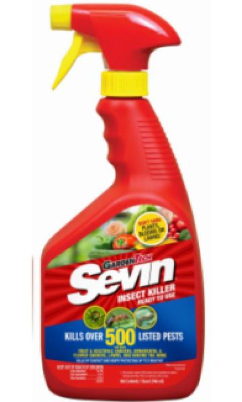 Insects may have found their way to your outdoor plants, but these intruders are killed on contact with Sevin Insect Killer Ready-to-Use. Shake the bottle, adjust the nozzle to the narrow fan spray setting, hold the sprayer 1 foot from the plant and spray to kill insects. This ready-to-use spray is specially formulated to protect lawns, vegetables, flowers, trees, shrubs and other outdoor plants and surfaces while killing over 130 listed insects. Find your affected area or specific garden crop on the label to get the most effective results