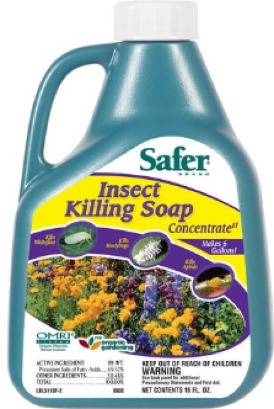 Insecticidal soap dries out the waxy outer skin of insects.Kills aphids mealy bugs spider mites and whiteflies.Kills insects on contact gentle on plants. Don`t use on new transplants newly rooted cutting or stressed plants.Avoid application when leaf temperature is 90.Mix one part concentrate with 50 parts water or 2.5 fl. oz.Spray leaves to the point of run off.Potassium Salts Of Fatty Acids:49.52%. Inert Ingredients: 50.48% Total: 100.0%.