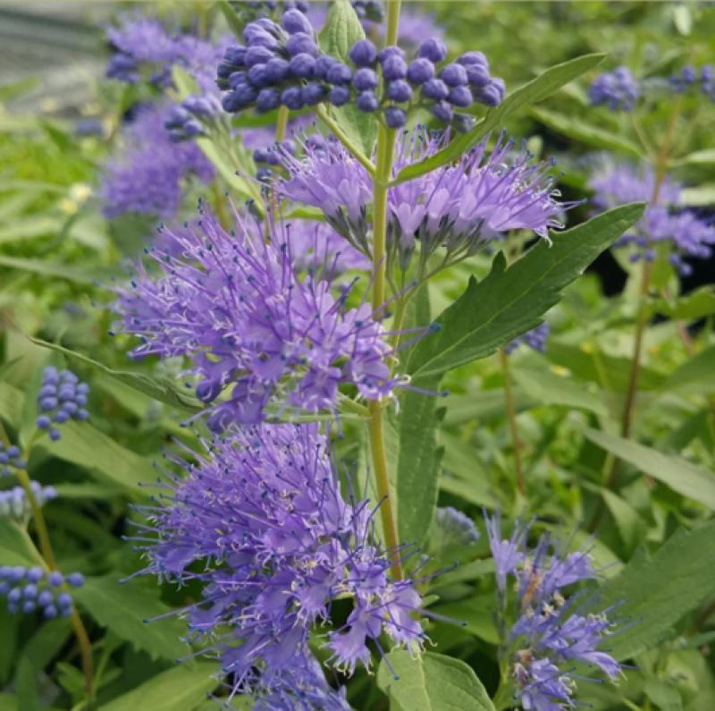 Caryopteris clandonensis 'Dark Knight' (Bluebeard) blooms with a profusion of dark blue flowers in late summer when few other shrubs are flowering. Its modest size makes it very useful in smaller yards. A fantastic nectar source for bees and butterflies. Drought resistant/drought tolerant plant
