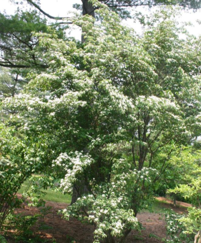 This dogwood is an excellent small specimen tree. Two outstanding characteristics are the four-petaled, white flowers that appear above the foliage in June and reddish-purple fall color. In the Midwest, this is a hardier substitute for the acid-loving flowering dogwood. The shallow root system will benefit with a layer of mulch to maintain a cool root environment.