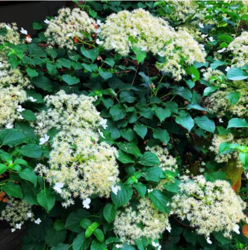 The Climbing Hydrangea is an underused plant that will soon become a favorite in your garden! Climbing Hydrangea is a robust, heavy vine that becomes blanketed in fragrant, creamy white flowers midsummer. Its clean, green leaves turn golden as cooler fall temperatures arrive. It does beautifully in shade, but be sure to provide ample support. This much beauty takes time to develop, but your patience will be richly rewarded.