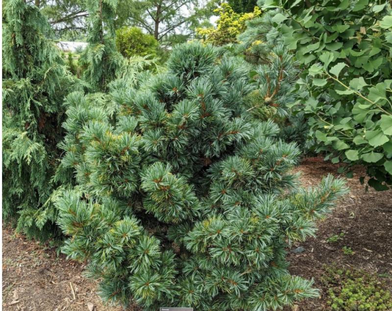 Pinus parviflora 'Gimborn's Ideal' is a refined and elegant cultivar of Japanese White Pine, valued for its soft, silvery-blue needles and graceful, irregular branching. With a compact, pyramidal to broadly spreading form, this selection brings year-round texture and color to the landscape. Its striking foliage and picturesque shape make it a standout specimen tree, even in smaller spaces.