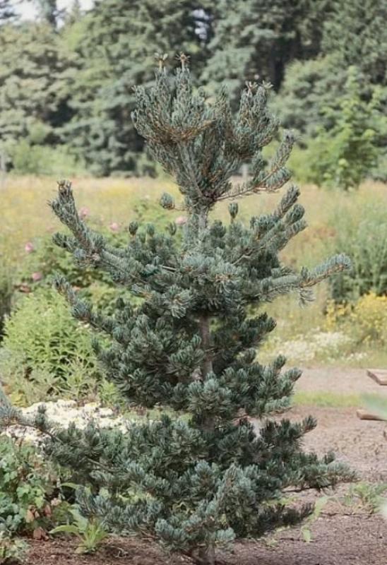 A narrower, more compact and upright form with short blue-green to gray needles. Widely used as bonsai or container plant. An easy to care for evergreen that works beautifully as a landscape specimen.