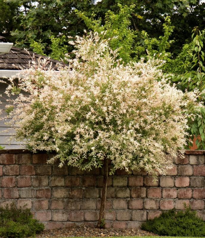 Weeping branches display striking pink stems and buds, surrounded by foliage mottled with white, green and pink highlights. The brightly colored stems provide excellent winter interest. This graceful shrub is a delightful garden accent. Easily maintained at a smaller size with regular pruning.