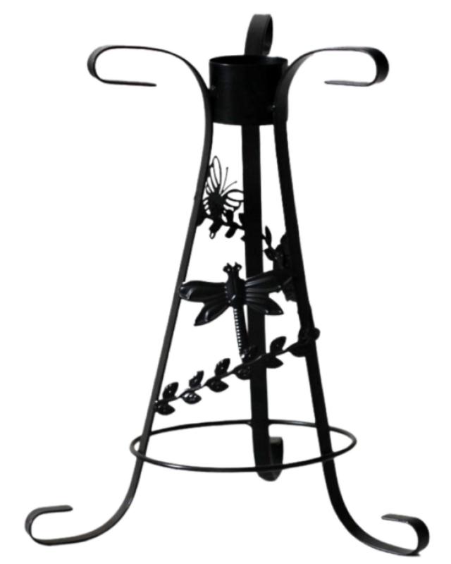 Add whimsical charm to you outdoor space with this decorative metal gazing globe stand featuring detailed butterfly and dragonfly accents for a playful nature-inspired look. Its designed to securely hold both 8-inch and 10-inch globes. The stand is crafted from durable weather-resistant metal with a sleek black powder-coated finish for long-lasting outdoor use.