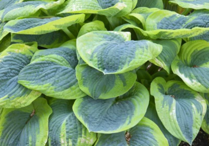 a popular giant hosta cultivar known for its very large, blue-green, heart-shaped leaves with wide, chartreuse-to-yellow margins that become more prominent as the plant matures. It features a thick, corrugated texture and is considered highly slug-resistant, making it a bold and rugged addition to shade gardens. The plant produces white, funnel-shaped flowers in mid-summer and thrives in shady conditions, though it can tolerate some sun.