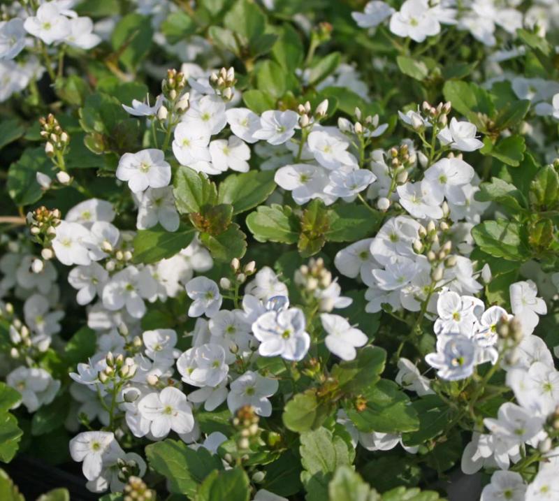 Veronica peduncularis 'Whitewater' prefers sun and moist, well-drained soils. For best appearance do not allow it to completely dry out.