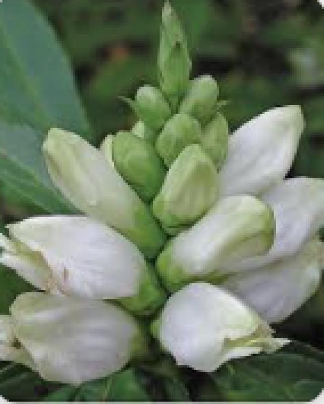 White Turtlehead (Chelone glabra), the Virginia Native Plant Society's 2024 Wildflower of the Year, a native North American perennial known for its upright growth and distinctive white, snapdragon-like flowers resembling turtle heads.