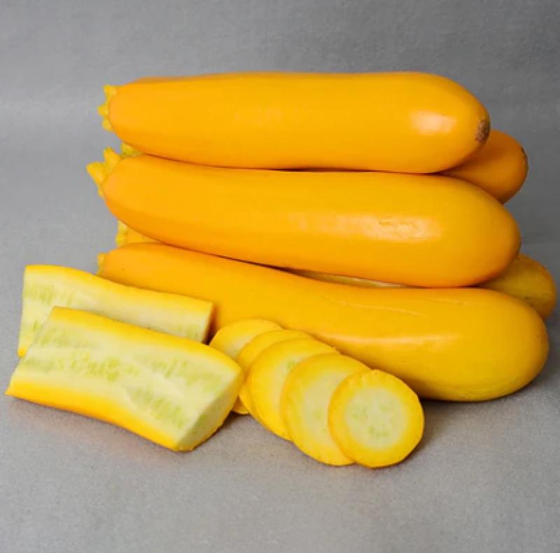 Yellowfin is an F1 hybrid variety of yellow zucchini known for its cylindrical, golden-yellow fruits, strong disease resistance (especially to powdery mildew), nutty flavor, and buttery texture. It produces a steady supply of high-quality, evenly thick fruit on vigorous, open-habited, and nearly spineless plants. Yellowfin zucchini can be enjoyed raw, grilled, sautéed, or used in soups and salads.
