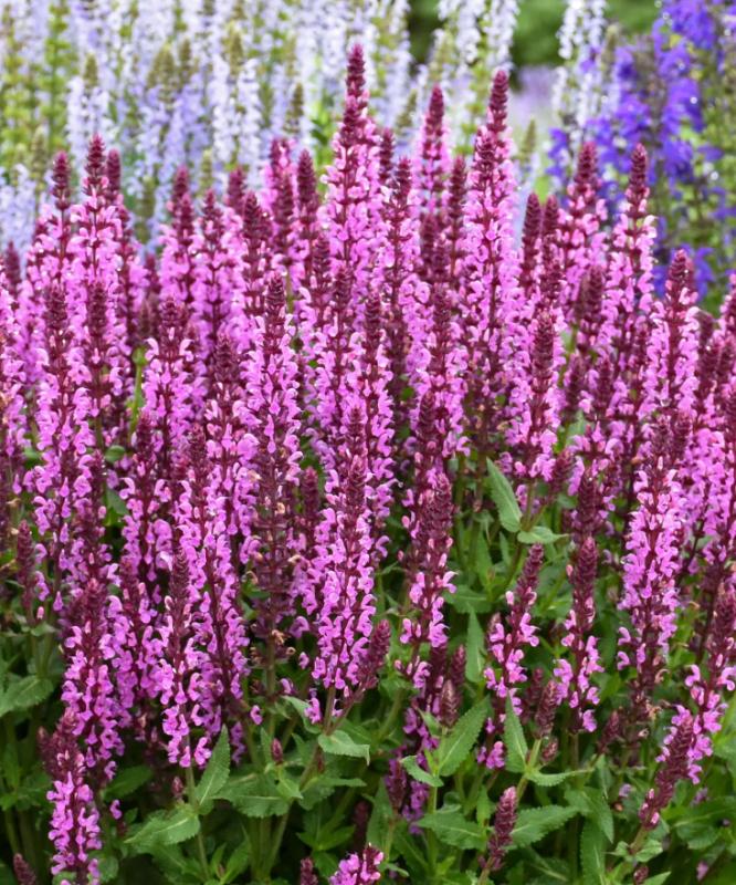 Dark violet-pink petals nestled in deeper pink calyxes and a shorter height make Salvia Pink Profusion an ideal border plant for garden paths. From the Profusion Series, this compact perennial delivers exceptional repeat blooming throughout summer when spent flowers are trimmed. A vigorous growth habit, outstanding heat tolerance, and sun-loving nature ensures reliable performance and vibrant color. Gardeners appreciate its butterfly-attracting qualities and deer resistance, while its manageable size makes maintenance simple.