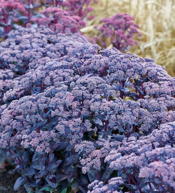 Dusty plum-blue foliage provides a sultry look. Pleasing clusters of rosy-pink flowers in late summer heighten its allure. More sun will intensify the foliage, transitioning it to deep purple. Sturdy and upright, this beauty from the Mojave Jewels™ series provides a late-season nectar source for beneficial pollinators. Sedum Mojave Jewels Sapphire is drought-tolerant and deer-resistant. Sedum store water in their thick succulent leaves which enables them to be extremely drought tolerant. Stonecrop are reliable, hardy, and easy-to-grow perennials.