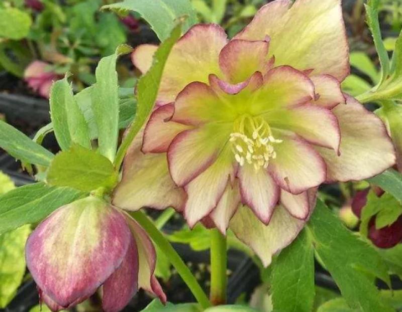 Helleborus 'Pine Knot Select Strain' is a hardy, evergreen Hellebore (or Lenten Rose) known for its durable, dark green foliage and a diverse array of cup-shaped flowers in colors ranging from white to pinks, reds, purples, and even speckled varieties that bloom from late winter into early spring. This low-maintenance perennial is deer-resistant and well-suited for shaded to part-shaded areas, thriving in borders, woodland gardens, and containers in USDA Hardiness Zones 4-9.