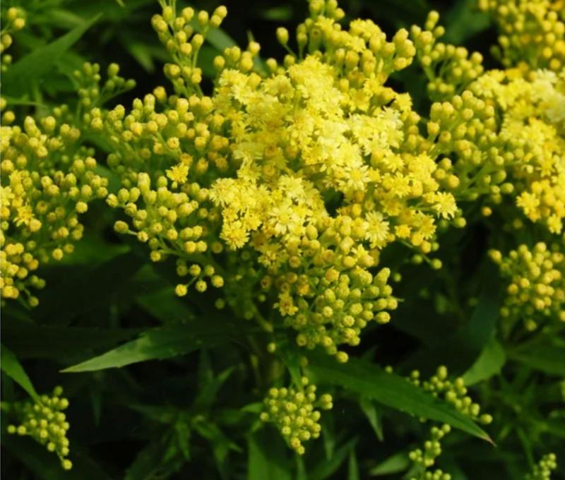 Little Lemon is a hybrid Goldenrod that blooms in mid-summer with full, bright lemon-yellow flower spikes held over small compact plants. This dwarf variety is great for smaller gardens where other Goldenrods would be too large.