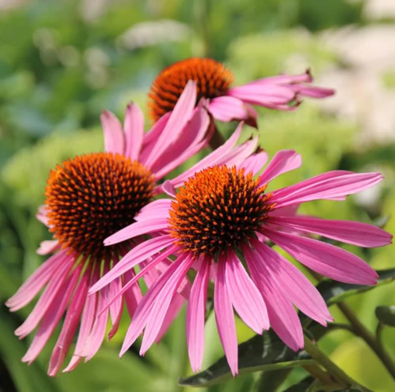 'Magnus' Echinacea has vibrant pink, ray-like flowers that surround deep-orange center cones, attracting plentiful pollinators to the garden throughout the summer. Leaving the spent stems and flowerheads in place to overwinter will also attract birds. Coneflowers are notably tough native plants and 'Magnus' is no exception, withstanding drought, clay, humidity and harsh winter conditions without complaint. Easy to grow, this plant is a great choice for beginner and experienced gardeners alike. (Echinacea purpurea)